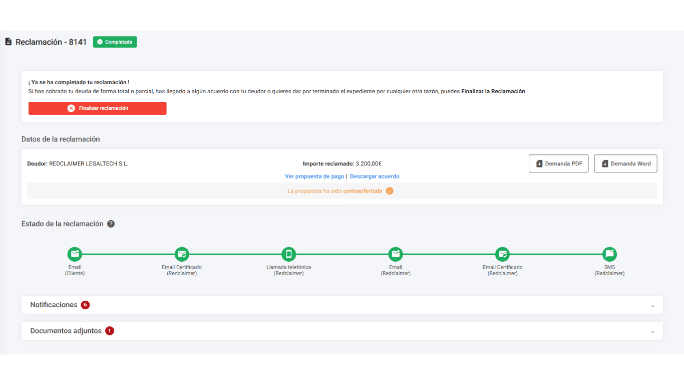 Una vez validado el caso, el cobrador de morosos activa automáticamente la reclamación amistosa. Contactamos con el deudor, hacemos seguimiento y registramos cada acción en tiempo real. Es la vía más rápida y eficaz para cobrar.